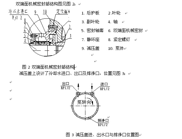 如用戶現(xiàn)場(chǎng)有潔凈的冷卻水源,可直接將冷卻水接至減壓蓋上,自進(jìn)口引入,從出口引出,循環(huán)冷卻機(jī)械密封效果最佳。