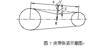 在a的中心位置朝垂直于皮帶的方向加外力W,當(dāng)此點(diǎn)撓度δ=0.016a mm時(shí),每根